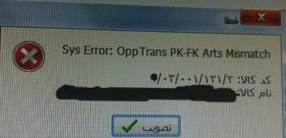 عملیاتی کردن برگه اصلاح بها و پیغام Sys Error: opp trans pk-fk arts mismatch