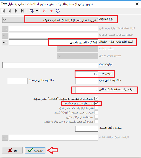 کل مبلغ قابل پرداخت (مربوط به کلیه پرسنل موجود در فایل) با 10 کاراکتر