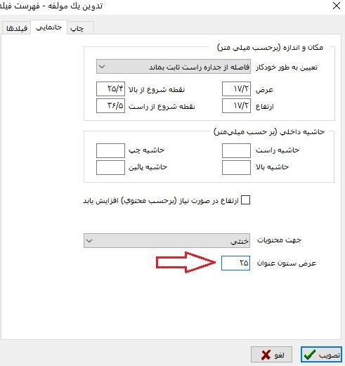 و در پنجره بعد مطابق شکل زیر عرض ستون عنوان را 25 قرار میدهیم و تصویب میکنیم.