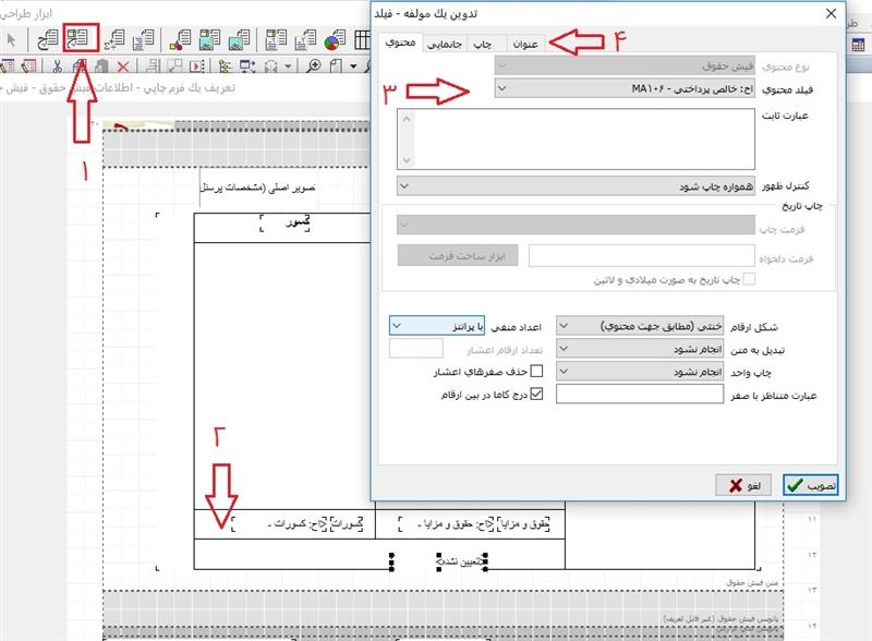 و بعد فیلد "خالص پرداختی " را انتخاب میکنیم و عنوان را اصلاح میکنیم.