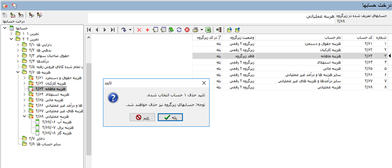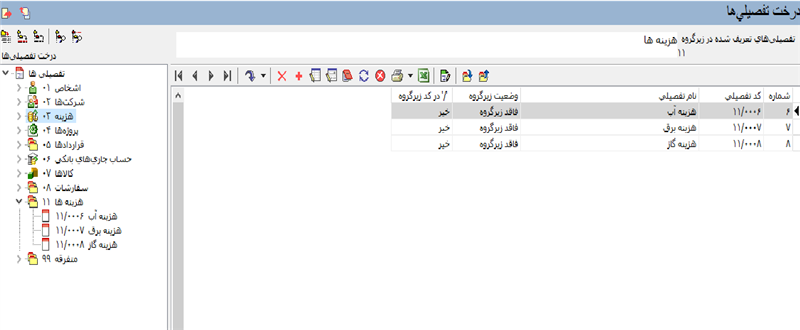 همانطور که در تصویر ذیل مشاهده می کنید تفصیل هزینه ها به عنوان حساب، در کدینگ حساب ها ظاهر شدند.
