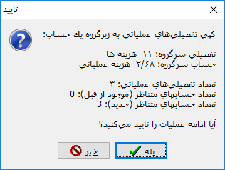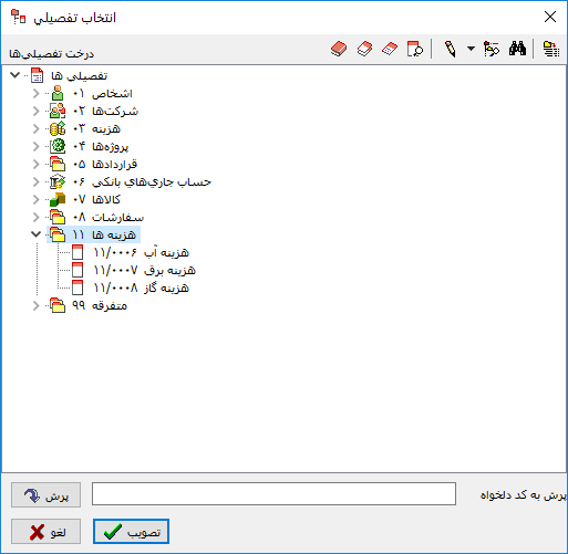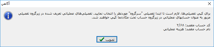 نکته: تعداد ارقامی که این حساب می پذیرد باید برابر تعداد ارقام تفصیلی ها باشد.