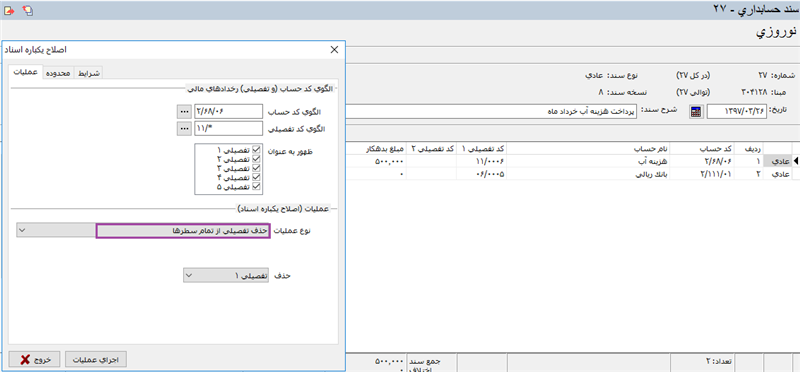 پیش وند کد تفصیلی را هم تا رقم مشابه نیز وارد می نماییم و سپس تکمه اجرای عملیات را می زنیم.