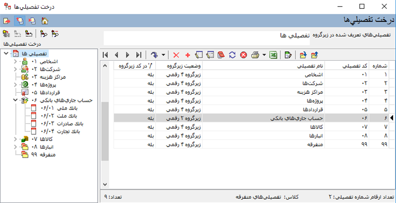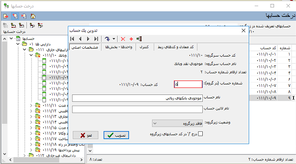 3- تعریف یک حساب جدید تعریف کرده و به تفصیلی های مزبور ارتباط میدهیم.