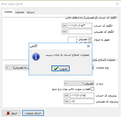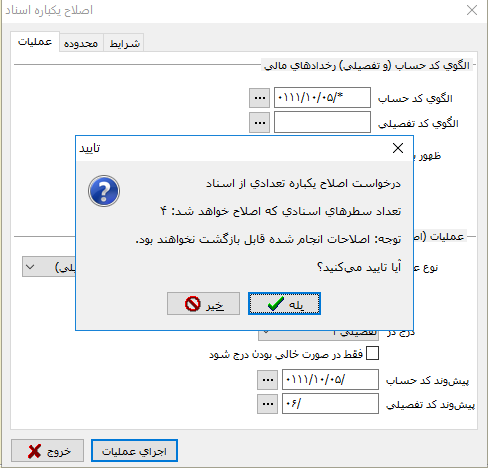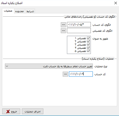 4- اصلاح یکباره اسناد، "تغییر حساب تمام سطرها به یک حساب ثابت"