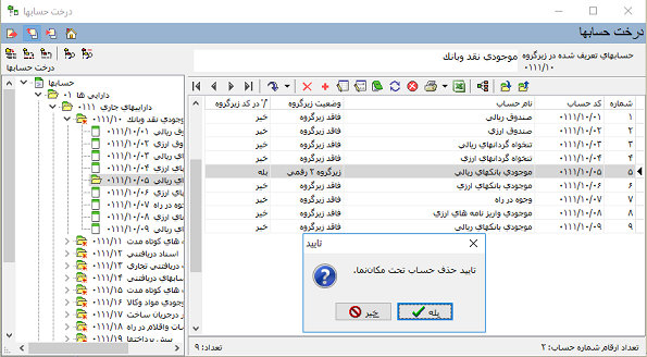 هدف این است که حسابهای عملیاتی زیر گروه حساب */0111/10/05 را به درخت تفصیلی ها انتقال دهیم: