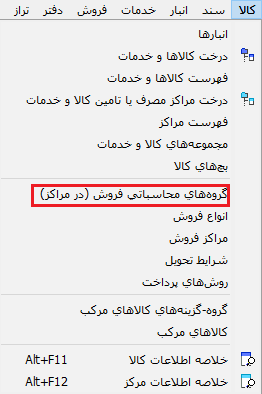 برای ایجاد یک گروه محاسباتی جدید میتوانید با توجه به تصاویر زیر از منوی کالا  گزینه مورد نظر را انتخاب و گروه محاسباتی را ایجاد نمایید