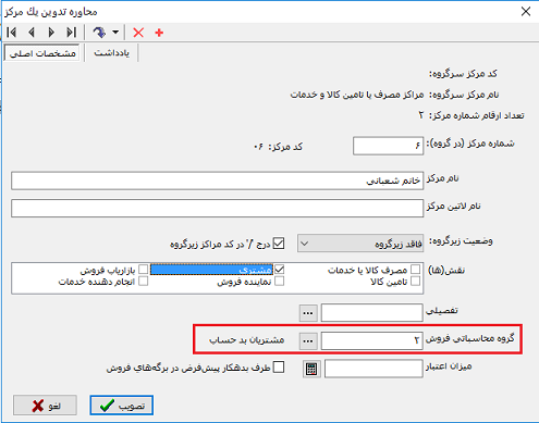 حالا مراکز مصرف یا تامین کالا (مشتریان بد حساب) را عضو گروه مورد نظر نمایید