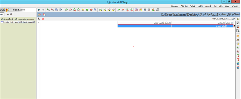 بدین صورت با در نظر گرفتن این نکته که کدینگها یکی باشد و پیغام خطایی در زمان فراخوانی نداشته باشیم بعد از انجام این فراخوانی تمامی سندهای پایگاه شیراز در این پایگاه افزوده می شود و بخش شیراز برای آن لحاظ شده است و اسنادی که از قبل در سیستم بوده اند با همان بخش قبلی محفوظ می ماند (شعبه تهران (دفتر مرکزی)).