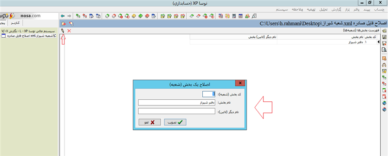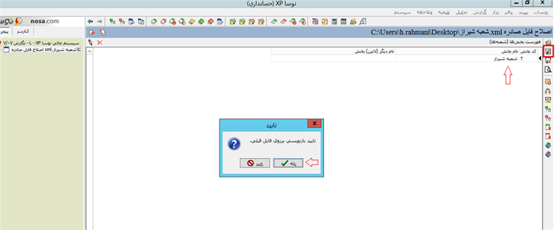 بعد از انجام تغییرات باید روی گزینه تصویب کلیک کرده و حتما عمل ذخیره سازی را انجام دهیم، برای این منظور روی ابزار مشخص شده در سمت راست صفحه کلیک کرده و سپس گزینه "بله" را میزنیم، همچنین این امکان را نیز در اختیار داریم که فایل را با عنوان دیگری ذخیره کنیم، به شکل زیر توجه کنید: