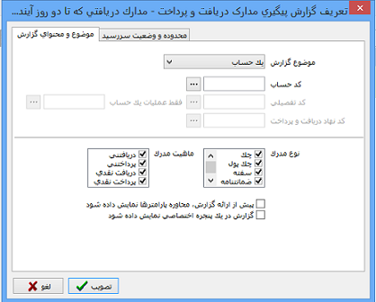 در نرم افزار دریافت و پرداخت امکانی داریم که می توان گزارشات را تا حدودی به صورت دلخواه طراحی نمود.