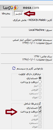 در پایان دقت شود در کادر کناری نرم افزار در منوی کاربر گزارش ها شامل ... دریافت و پرداخت تیک خورده باشد .