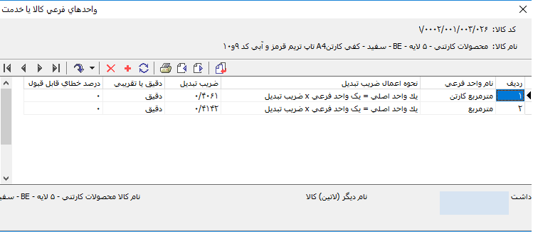 در  گزارش عملیات یک بچ به تفکیک کالا که به صورت سرجمع گردش و موجودی کالا را نشان میدهد واحد کالا به واحد خاص تبدیل نمیشود و همان واحد اصلی ظاهر میشود.
