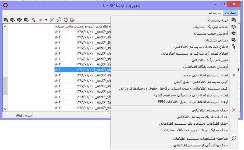 به همین صورت پایگاه های تلفیقی را نیز می توانیم جدا کنیم و مدارکی که مربوط به آن سال مالی مورد نظر ما نیستند را پاک نماییم