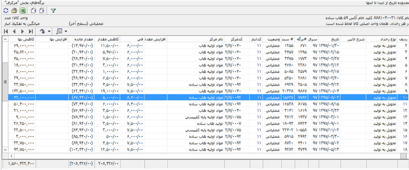 با سلام باستحضار میرسانم جمع گردش یک کالا در کارت با تراز موجودی کالا متفاوت است کنترل کردم یکی از مراکز هزینه در تراز موجودی کالا محاسبه نمیشود