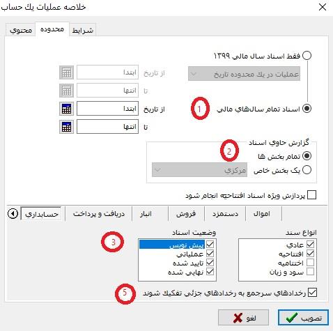1- اسناد تمام سالهای مالی در گزارش ها لحاظ شود.