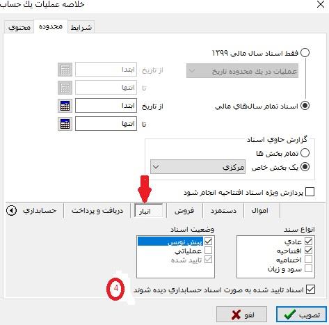با انتخاب این گزینه اسناد پیش نویس هم در گزارش ها لحاظ میشود.