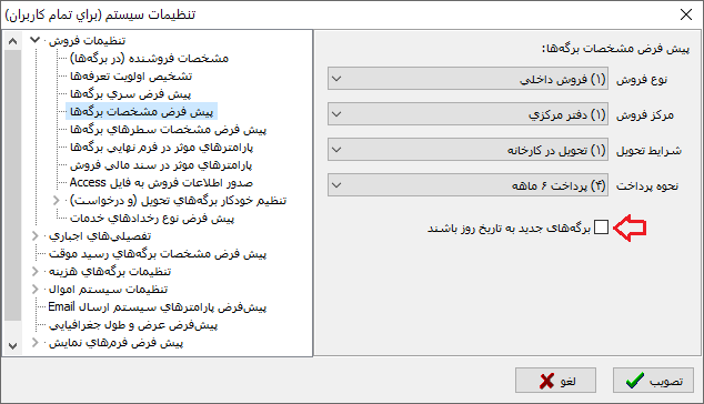 - فیلدهای قابل اصلاح حقوق نباید در برنامهی ثبت حقوق بکار روند – با اصلاح آزاد، حاصل محاسبات قبلی بیاعتبار خواهد شد + معوقهپذیری نقض خواهد شد.