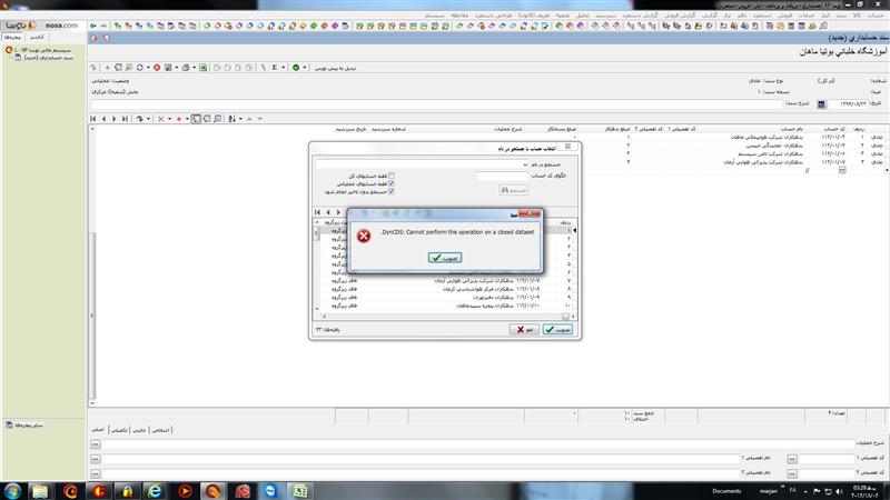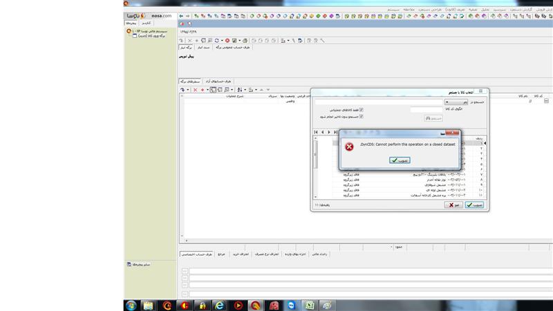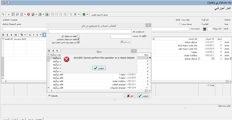 این پیغام خطا را در حالت های مختلف بررسی کردم ، حسابهای مختلف، کالاهای مختلف ، هم تنظیم سند دریافت و پرداخت و هم تنظیم سند حسابداری هر بار با این پیغام روبرو میشدم(البته این در حالتی است که تنظیم سند با سرعت بالا صورت گیرد) ویندوز سیستم seven 32 bit با  sql 2000بود
